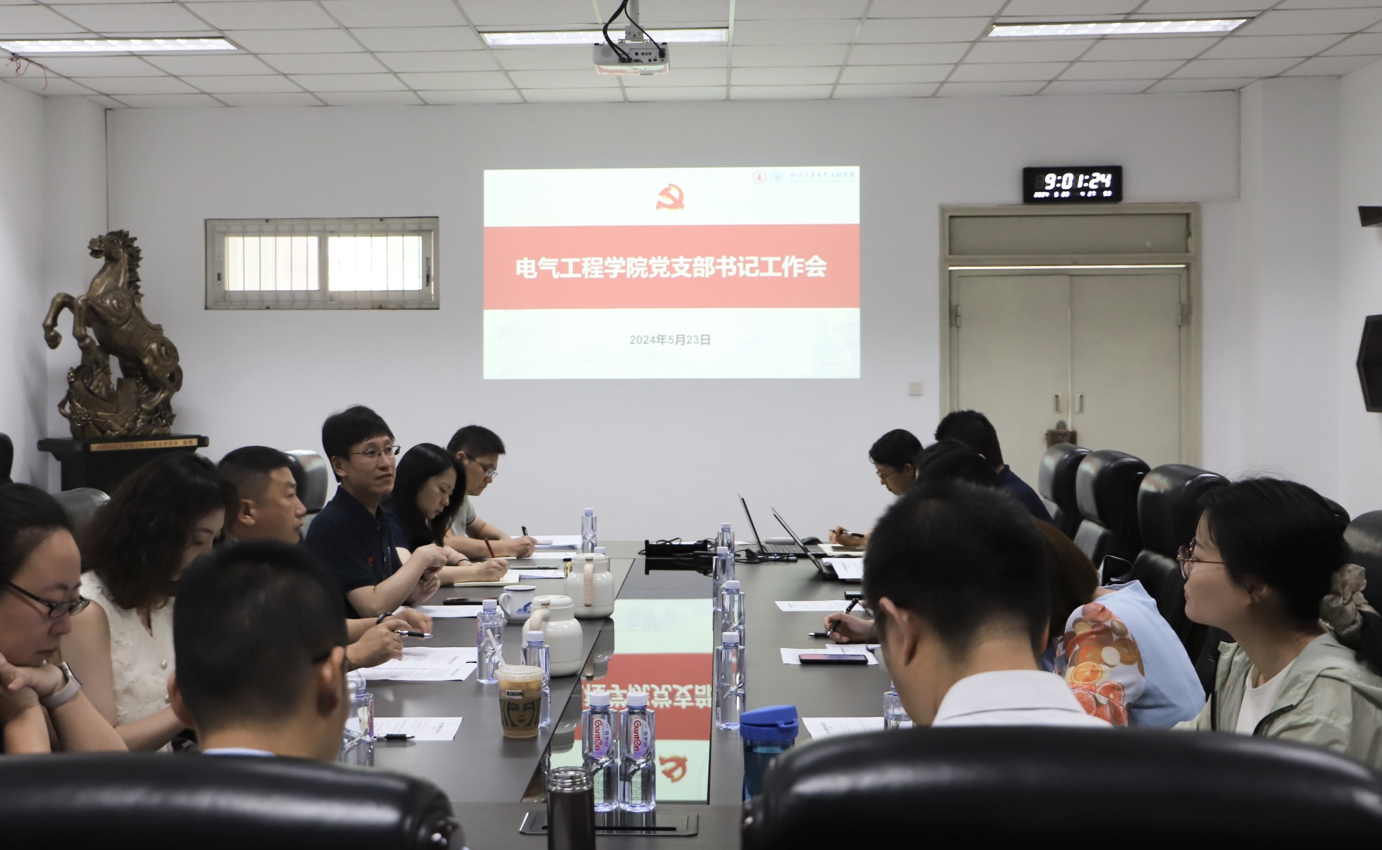 在基础教学楼会议室召开党支部书记工作会,督导推进党纪学习教育和创建“三个一流”工作。007足球