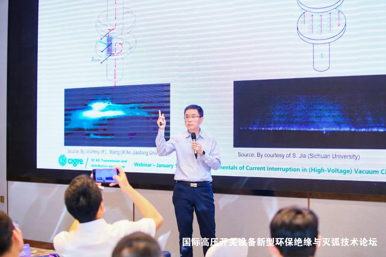 论坛上,贾申利教授作了题为“高电压等级真空断路器电流开断基础”的专题报告,从真空电弧的基础出发,深入分析了高电压等级真空断路器电流开断的关键,对真空开关技术向更高电压等级发展所面临的主要问题进行了详细解读,总结了高压真空开关技术的研究现状及发展趋势,并分享了四川大学先进电工材料及新型电气设备团队在高电压等级真空开关核心技术方面的相关研究工作及成果。