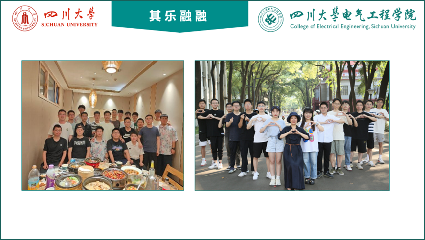 团队五育融合,立德树人。把健康人格和高尚品德放在首位,营造有社会责任感、理想信念和探索精神的团队氛围,荣获四川大学第四届“德沃群芳”育人文化建设标兵团队;秉持以生为本教育理念,崇尚科学,追求真理,培养学生独立思考、发现和解决问题的能力、科学探索与创新精神;通过联合培养、参加国际国内会议等多种方式,开阔学生眼界、提升研究能力、团队协作能力和组织能力;重视学生德智体美劳全面发展,通过丰富多彩的文化体育活动、社会公益活动等,构筑和谐、宽容、向上的成才环境。团队源源不断地为国家培养输送高素质人才,毕业生就业率100%,分布全国31个省市自治区,在电力、石油、水利等能源行业,高校教育,航空、交通等行业关键领域关键岗位发挥着重要作用,展示着自己的青春和才华。