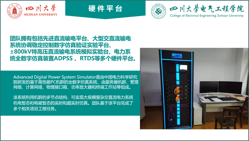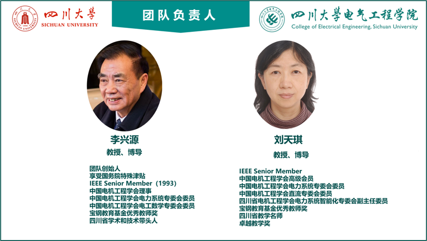 四川大学电力系统稳定与高压直流输电团队,是我国最早从事直流输电相关研究的团队之一,创始人为李兴源教授,现任负责人为博士生导师刘天琪教授*,成员包括王海风教授*、王渝红教授*、杜文娟教授*、张英敏教授*、莫思特*、曾琦*、王顺亮*、何川*、马俊鹏*、李保宏*、印月*、南璐*、彭乔*、郑宗生*、廖建权*、高仕林*、江琴*、冷敏瑞、焦宁。团队有教授5人,副教授/副研究员12人,讲师/助理研究员3人,博导6人,硕导12人。此外,团队拥有汤广福(中国工程院院士)、吴磊(Stevens Institute of Technology 副教授)、贺之渊等高端学术顾问和外聘博导。