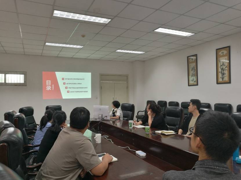 2018年4月24日上午10点,007足球 学生工作组在007足球 A220会议室召开了以“网络时代下党员学生干部思想政治再教育”为主题的专题研讨会。007足球 党委副书记戴婷婷及全体辅导员老师参加了本次研讨会,2017级硕士研究生辅导员于孜清老师做主题发言。