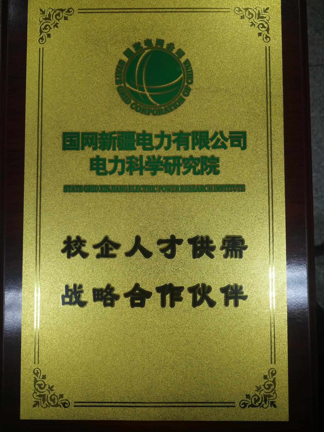 “国网新疆电力有限公司电力科学研究院校企人才供需战略合作伙伴”授牌仪式