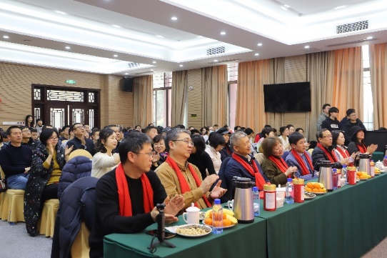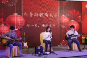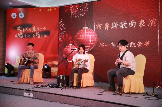 各系、中心、学工和行政的教职工代表为大家献上了精彩节目,送上新春祝福。青年教师邱一苇、唐凯豪等组建的乐队为大家带来《布鲁斯歌曲表演》,拉开了演出序幕。