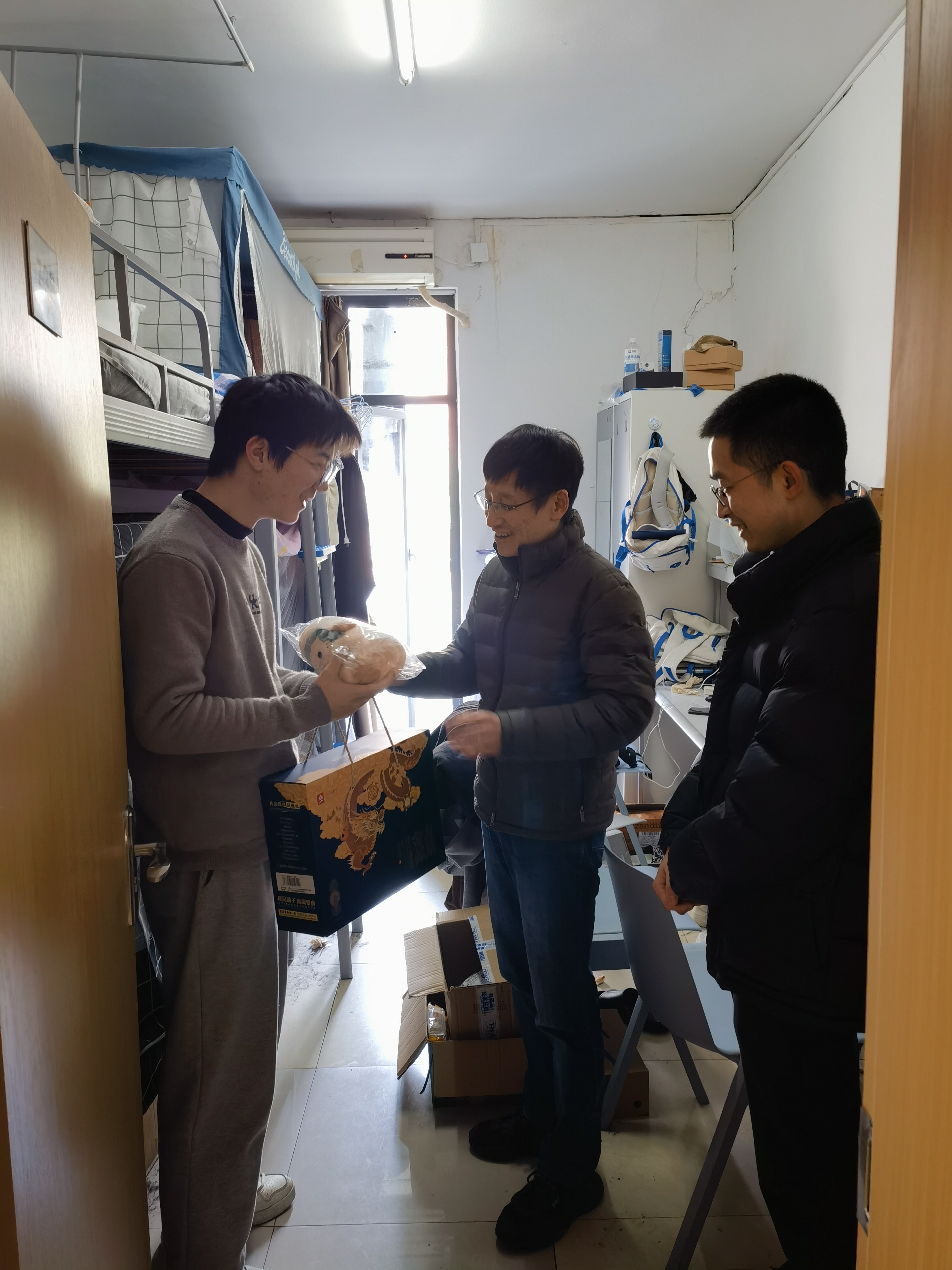 会议室为部分留校研究生代表发放了新春慰问礼包。赵书记仔细询问了同学们留校期间的学习和生活安排,叮嘱大家注意安全,经常与导师联系交流,在认真完成科研工作的同时,注重劳逸结合、身心健康。