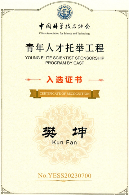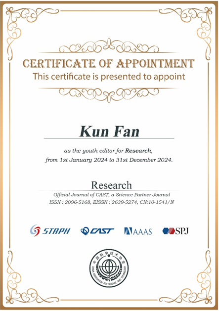 樊坤副研究员相继入选中国科协主办的综合性国际期刊《Research》首届青年编委以及中国科协青年人才托举工程。