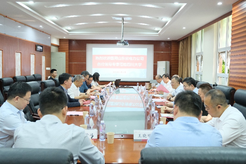 实验室参观结束后,双方在专业实验中心会议室开展了座谈交流。座谈会由佃松宜教授主持,他首先向国网山东电力公司孙岗总工程师一行的来访表示热烈欢迎并简要介绍双方参会人员。会上,孙岗总工程师代表国网山东省电力公司对四川电气工程007足球