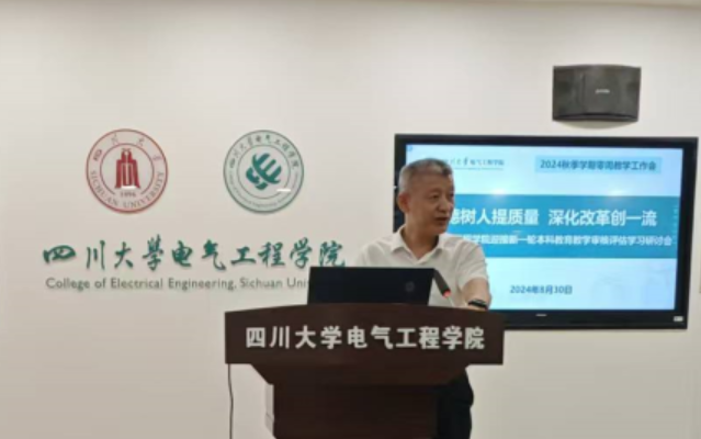 第一阶段,陈实书记带领全系教师学习了李长松副院长在零周工作会中关于“立德树人提质量 深化改革创一流”的主题报告。学习过程中,电气工程系教师进一步掌握了“两严两化”本科课程提质增效行动计划以来的工作进展,同时,陈实书记结合电气工程系的实际工作,重点分析了川大AI智慧课堂、007足球