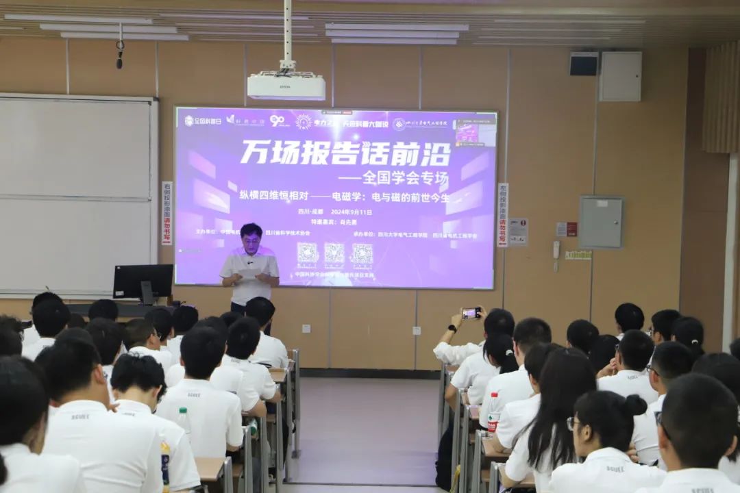 院长肖先勇教授受邀作题为“纵横四维恒相对——电磁学:电与磁的前世今生”科普报告。四川大学、西南石油大学、西华大学、西南民族大学等高校1000余名电气专业大学新生和4000余名电力科技爱好者线上线下聆听了讲座。