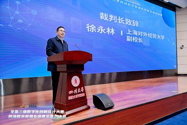 的学科发展情况以及在跨境电商方面的研究及应用。上海对外经贸大学副校长徐永林代表裁判专家组致辞。