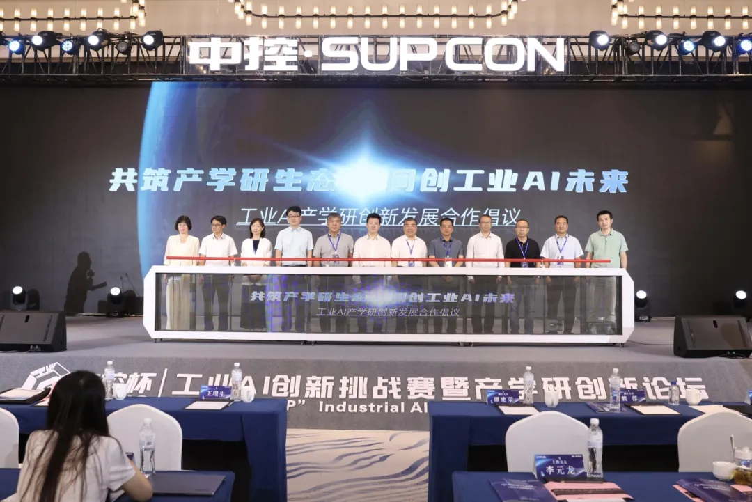 与中控技术和兄弟高校一同,现场发布“共筑产学研生态,同创工业AI未来——工业AI产学研协同创新合作倡议”。