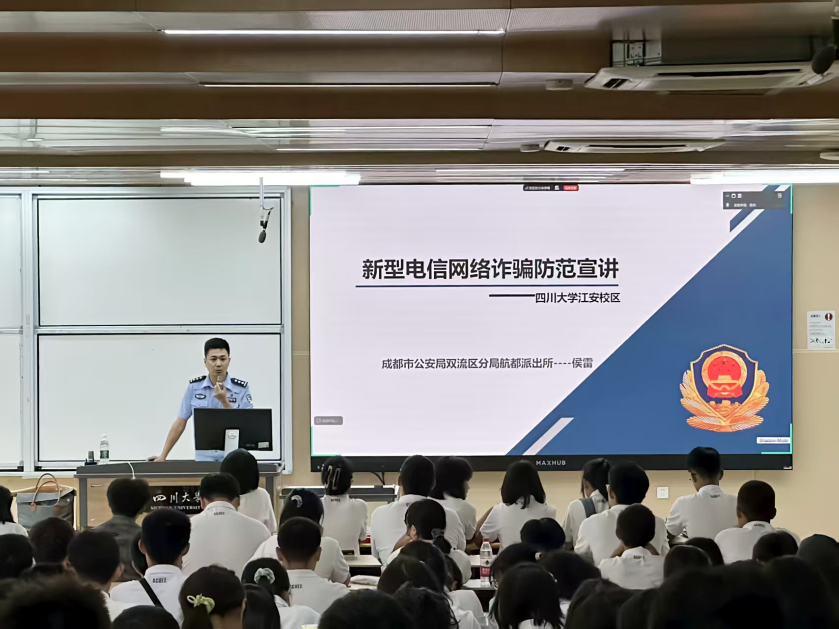 2025级新生开展了预防网络电信诈骗专题科普讲座。侯警官通过真实案例警示新生要提高防范意识,深入讲解了常见诈骗手法的识别与防范要点,强调“与钱有关的事情务必核实身份”。同学们现场在警官指导下安装“国家反诈中心”APP,讲座切实增强了新生的网络安全意识和反诈防骗能力。