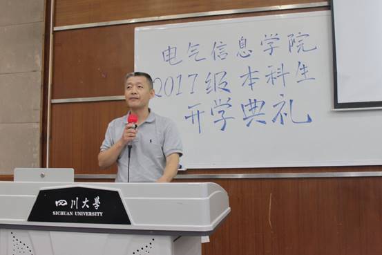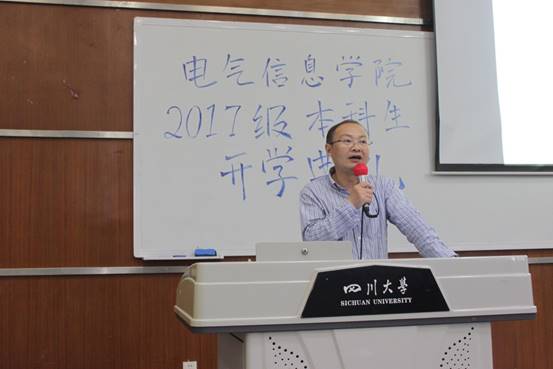 院长助理、博士生导师肖先勇教授作为教师代表发言。他汇总归纳了我校校长谢和平院士六年以来的新生寄语,从历史文化、科研水平、教学条件、领域成果等方面概述了007即时比分