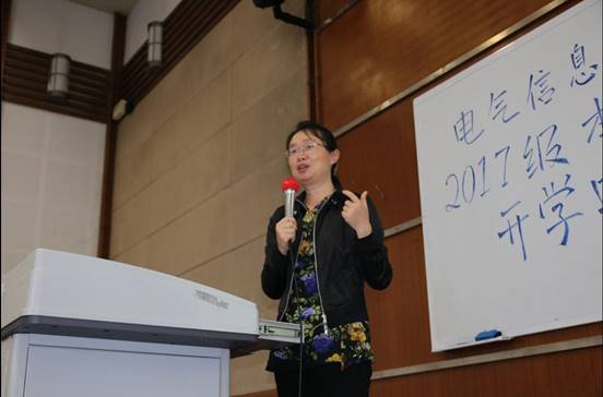 下午15时45分,会议正式开始,滕欢老师热情洋溢地为2017级电气工程及其自动化新生进行专业教育。滕欢老师向同学们简要介绍了专业的基本信息,让同学们充分认识到本专业今后的就业发展方向。她用图片和切实经历向同学们展现了未来的研究及工作方向,详细讲述了基础课程内容,强调了重点难点课程,介绍了实践周的大致安排。