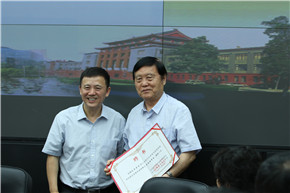 教授委员会主任刘俊勇宣读理事会成员名单,张林副校长为理事会成员颁发了聘书
