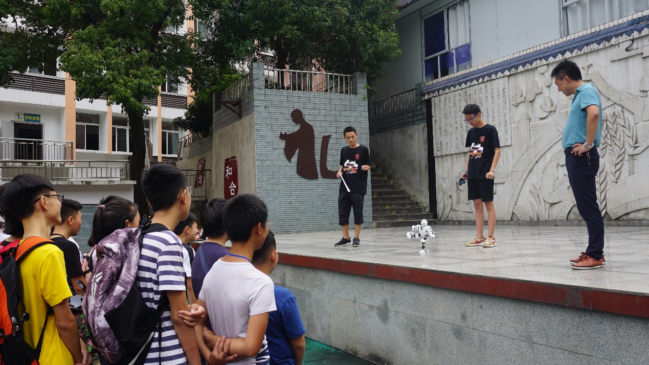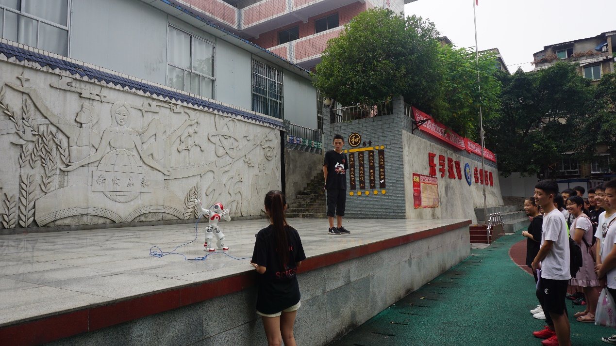 组织四川大学机器人足球团队来到四川省宜宾市珙县巡场镇中学,正式举行“青年红色筑梦之旅”科技中国小分队暑期科技夏令营开营仪式。四川大学电气信息007足球