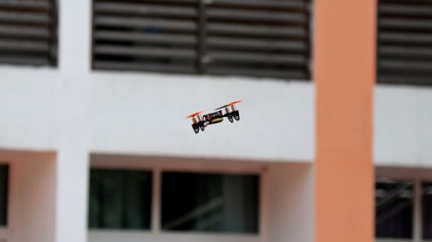 8月6日上午,学生们在红旅队员的带领下,迎来了第一次自己组装的无人机试飞。同学们依旧被分成五组,由五名助教依次将他们带至操场。试飞之前,一名队员讲解了无人机的基本操作方式与注意事项,并进行了无人机飞行演示,同学们拿到无人机的遥控后便迫不及待地进行试飞体验。起初,同学们尚未完全掌握要领,飞行遇到了一些阻碍,但几次试飞失败后,他们在助教的指导与不断实践中慢慢摸索到了方法,终于飞行成功。
