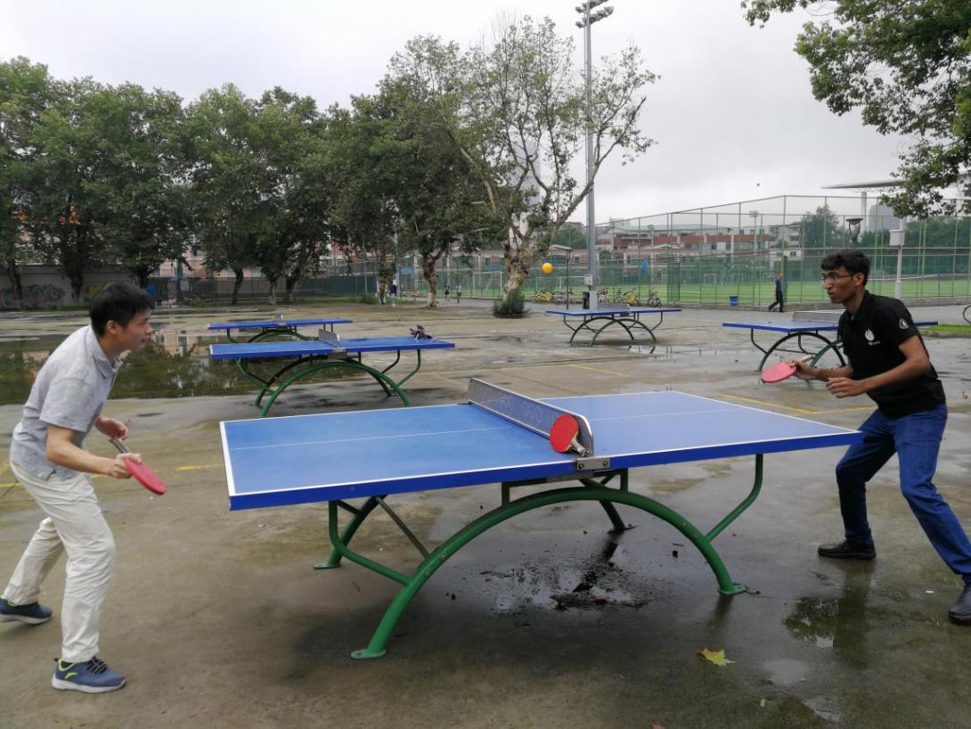 同学与交流生们纷纷展现各自的乒乓球实力,秉持着比赛第二,友谊第一的前提,双方开展了多轮比拼。交流生Murad的球技非常好,与小组同学的比拼不相上下,他提到“一直很喜欢乒乓球这项运动,打乒乓球考验一个人的反应能力和专注力,乒乓球是一项非常棒的运动”。当然部分留学生并不是很熟悉乒乓球运动,但在007即时比分