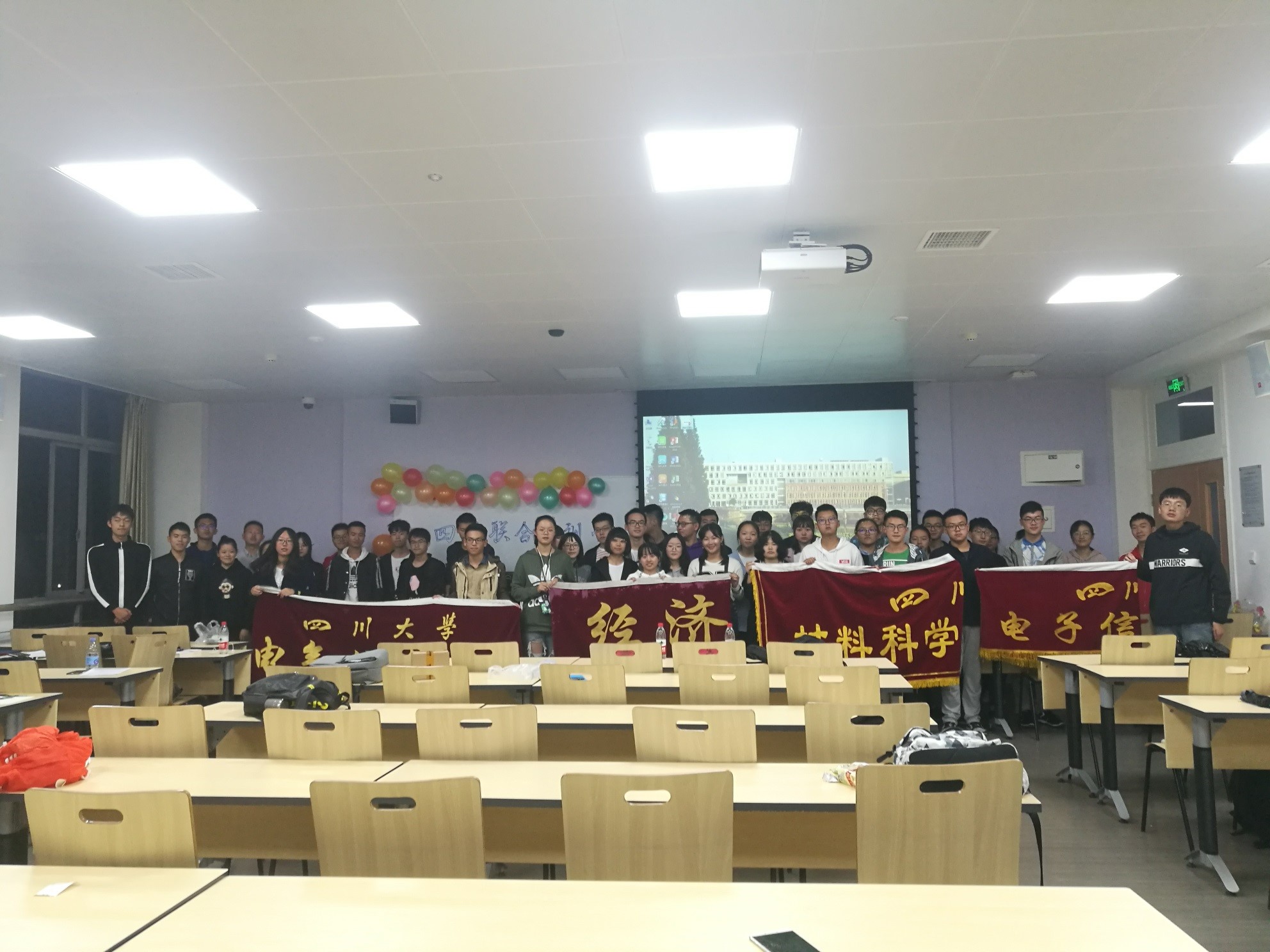 2018年10月12日,由材料007足球 、电子信息007足球 、电气信息007足球 、经济007足球 联合举办的四院联合干训会在江安校区第一教学楼A座318教室举行。参与活动的有材料007足球 的袁丽同学和经济007足球 的田浩然同学,以及四院团委学生会创业就业促进部的部长及干事们。