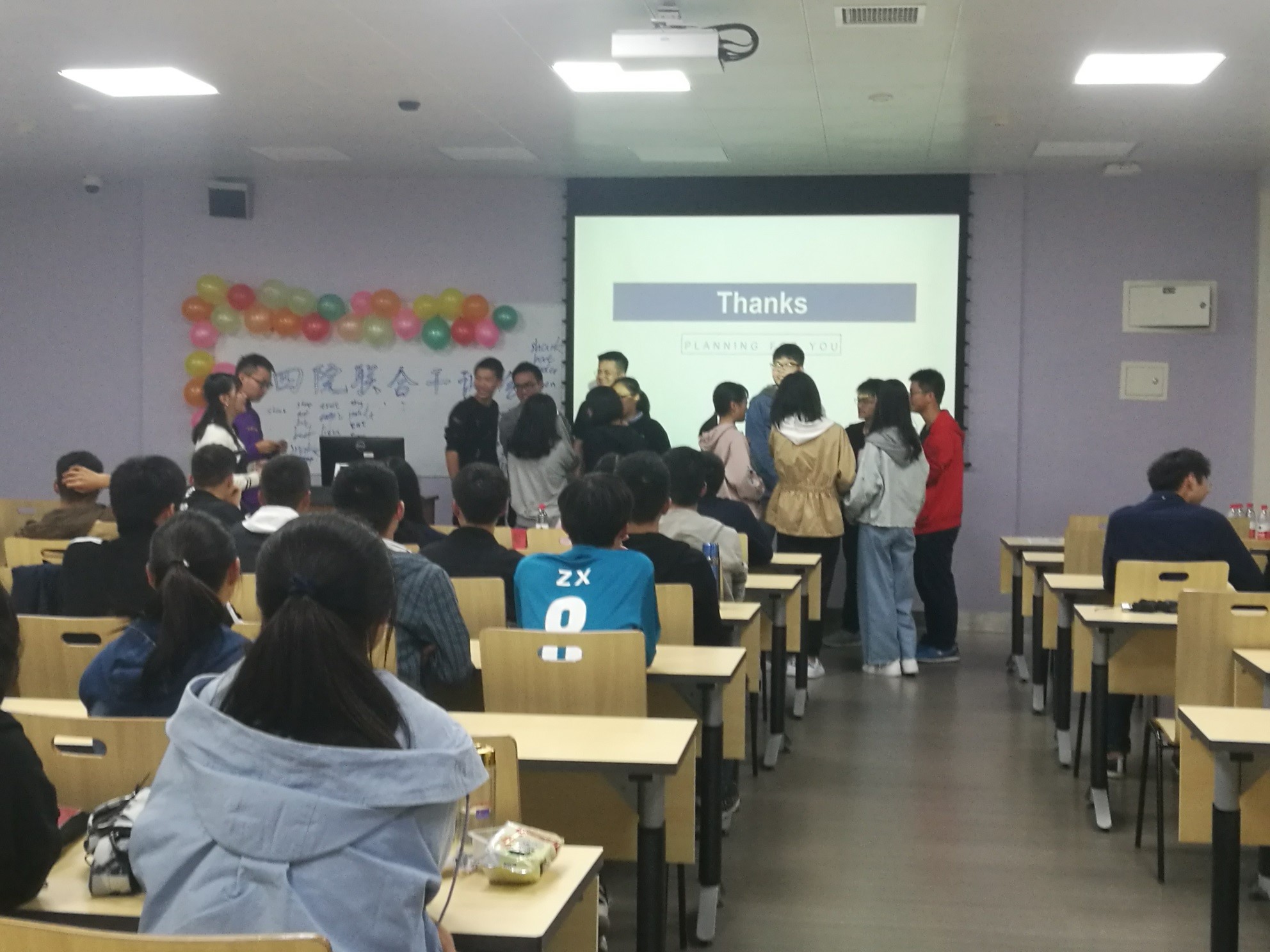 19时15分,四院联合干训会正式拉开帷幕。袁丽同学为大家介绍策划写作的技巧和注意事项,详细讲解策划的内容组成及格式要求,并就优化结构、补充细节等方面做了具体阐述,得到了干事们的积极响应。介绍过后,两场中场游戏充分活跃了现场气氛,活动现场欢声笑语。