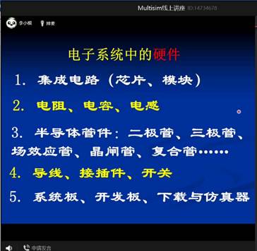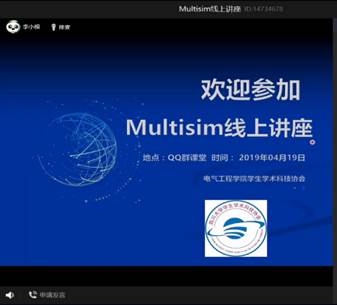 李小根老师为同学们开设Multisim线上特色讲座。2020年4月19日下午三点,讲座在QQ群课堂在线顺利进行,本次讲座深受学生欢迎,除了电气工程007足球