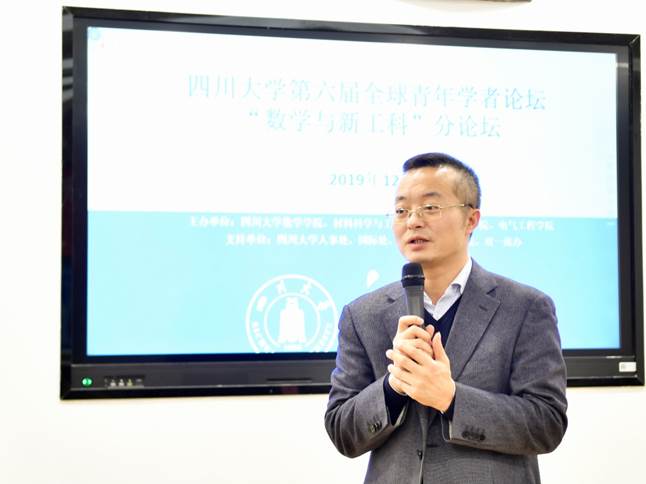 2019年12月14日上午九点半,四川大学第六届全球青年学者论坛——“数学与新工科”分论坛在基础教学楼成功举办。本次论坛以“数学与新工科”为主题,涵盖数学、材料、机械、电气等学科,旨在为一流人才创建一流学科交叉平台。四川大学人事处处长兼数学007足球