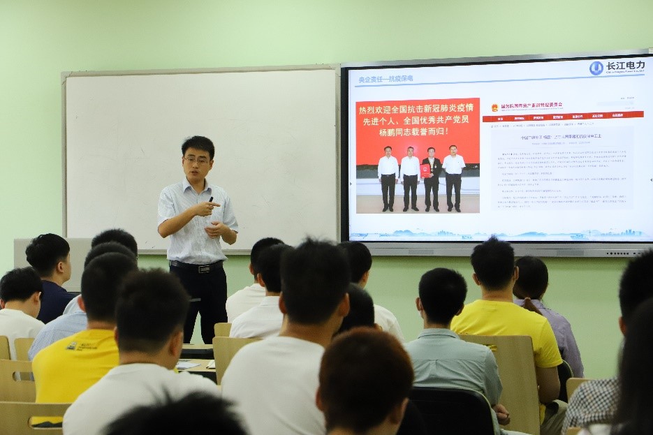 大会伊始,张建军向到会毕业班同学介绍了中国长江电力股份有限公司的发展概况。他说道,作为全球最大的水电上市公司,企业在发展水电事业、深耕电力市场的同时,致力于清洁能源的开发与管理,牢牢把握国家“走出去”战略的机遇和挑战,成为世界水电行业流域调度、运行管理和技术标准最高水平的代表。同时他指出,长江电力是一个非常年轻的团队,十分重视新进员工个人发展和提升员工获得感。长江电力也是一个极具社会责任感的集体,疫情期间为保障安全,企业员工连续60天坚守岗位,克服了非常多困难,为全国抗疫贡献力量。接着,张建军对“三峡班”及“优才计划”进行了介绍,并公布具体招聘计划及招聘方式。