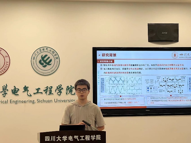 交流环节,19级硕士毕业生李卓城作主题为“分布式电源接入背景下的配电网谐波评估与治理方法研究”学术分享,重点围绕“不完全测量条件下的中压配电网谐波评估方法”、“基于储能系统优化调度的中压配电网谐波治理方法”和“基于虚拟谐波阻抗控制的低压微电网谐波治理方法”三个方面展开,并详细介绍了科技论文的撰写方法。19级硕士毕业生瞿科围绕“基于扰动波形数据的中压电缆早期故障严重程度评估及定位方法研究”主题分享了“电缆早期故障动态模型”、“电缆早期故障波形特征分析”和“电缆早期故障严重程度评估方法”三个方面内容,并表示要将科学理论研究与实际电力工程有机结合,两者互相促进、共同发展。