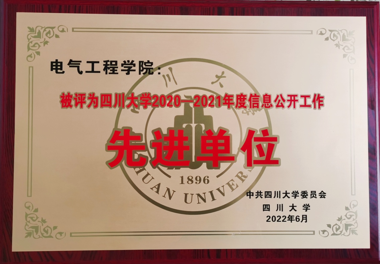被授予“四川大学2020-2021年度信息公开工作先进单位“称号。