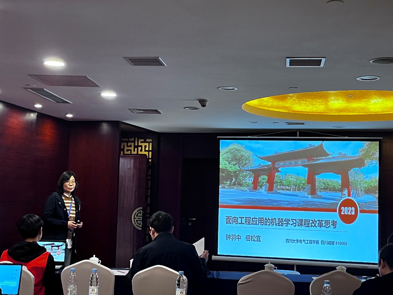 会议上,佃松宜教授担任以“实践教育与产教融合”主题的分论坛主持人。杨波老师作了题为“基于新工科背景的自动化专业多样化实习实践改革探索”的报告,向与会同仁分享了四川大学自动化系近年来针对本科生实习实训作出的改革举措和积累的经验体会,获得了在场教师的一致好评。钟羽中老师作了题为“面向工程应用的机器学习课程改革思考”的报告,分享了在教学过程中融入了竞赛任务的做法,新颖的教学设计引起了在场专家的广泛兴趣。