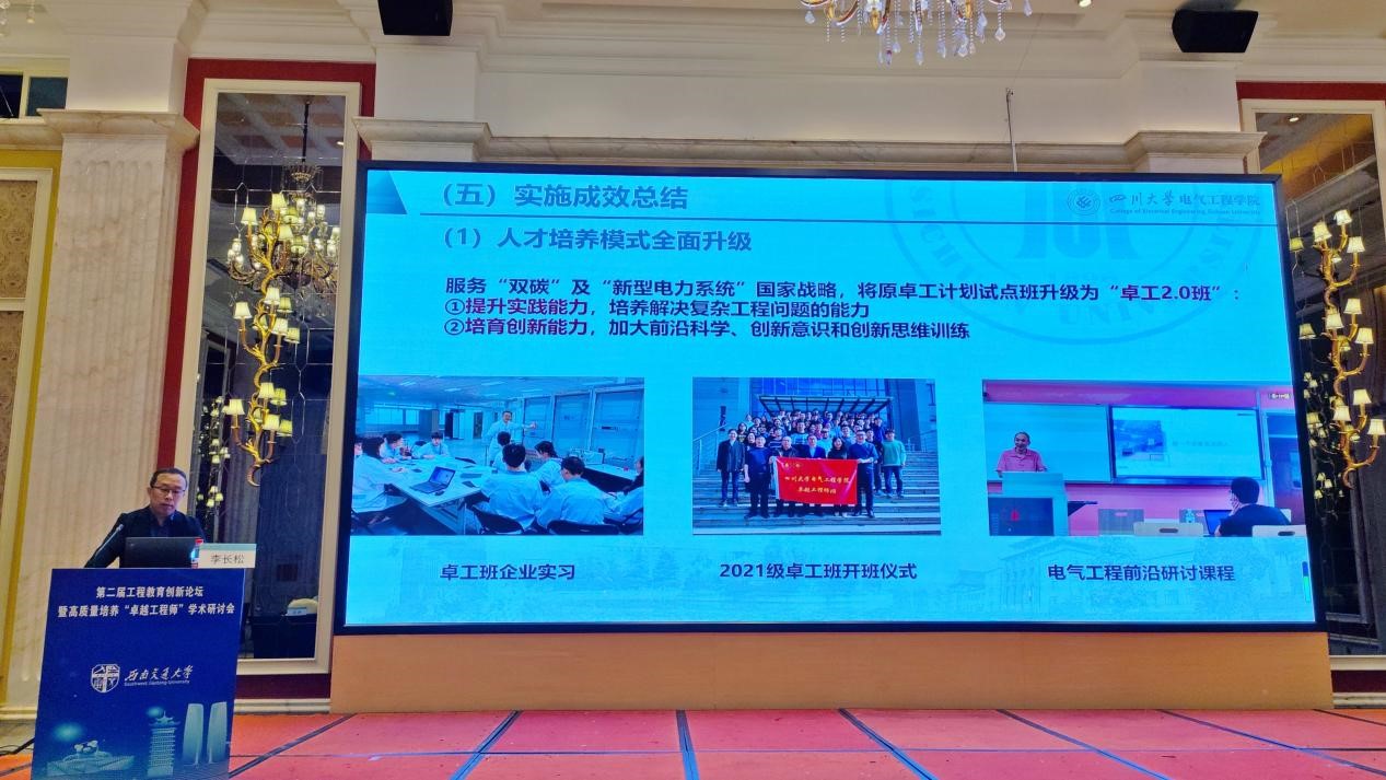5月13日,李长松副院长作题为《以“精准定位、开放融合、产教协同”为理念的电气类卓工2.0人才培养模式研究与实践》的专题报告。报告就研究背景、电气类卓工建设理念研究、卓工课程体系的构建与实践、实践创新平台的打造与实践、实施成效总结五个方面进行了阐述,突出了“坚持立德树人根本任务、坚持川大特色培养理念、坚持实践创新能力提升、坚持创新人才协同培养”的培养方案核心理念,提出了电气专业卓工课程体系,分享了围绕实践能力和创新能力打造的实践创新平台,展示了川大电气卓工班的实践成果。最后,李长松副院长向一直以来支持007足球