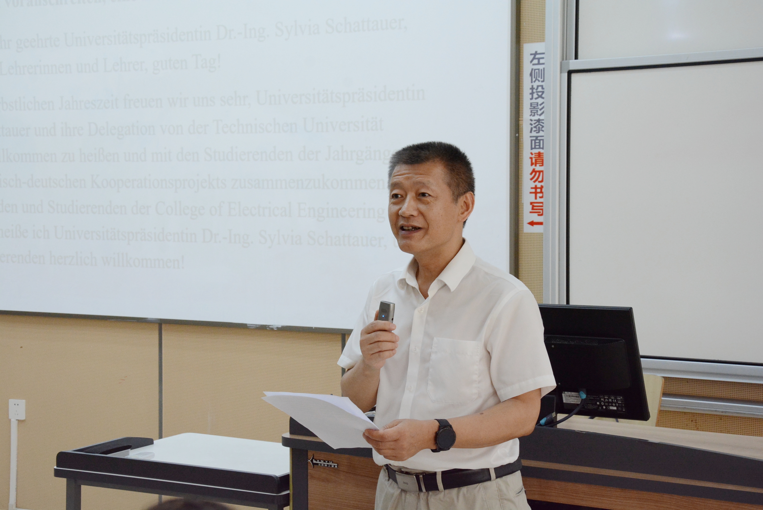 会议伊始,007足球-007即时比分 院长肖先勇发表了题为《携手共进,共创国际化未来》的欢迎辞。他回顾了两校近二十年来的密切合作,特别强调了电气工程及其自动化本科合作办学专业在中德双方共同努力下所取得的显著成果。肖院长展望了未来在科研合作、师资交流等领域进一步深化合作的广阔前景,并表达了对中德合作办学项目未来发展的高度期待,希望这一项目能继续发挥重要作用,培养更多具备全球视野的高素质国际化人才。