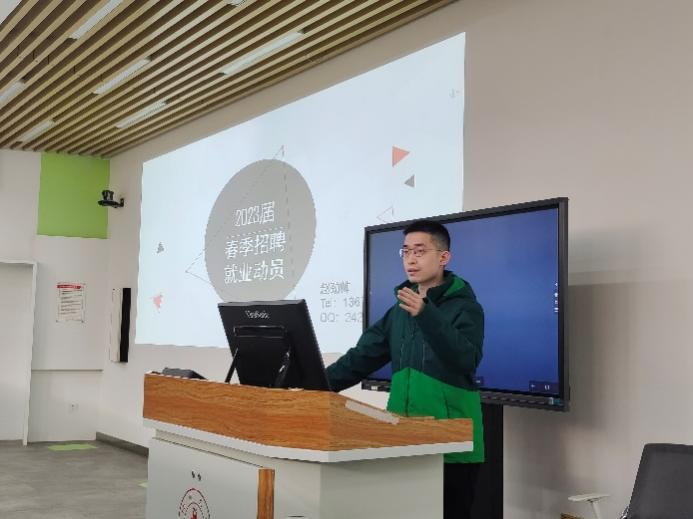 考研整体情况及形势进行了详细分析,强调了考研复试和调剂环节中的时间节点和注意事项,并给出了往届考研同学调剂成功的院校供同学们参考。接着赵劲帅老师为同学们进行了春季就业形势分析,并向同学们详细介绍了求职就业基本流程、求职信息获取途径、求职所需材料准备,同时分享了一些求职小技巧,希望同学们能够积极投入到春季就业准备中,全面提高自己的就业竞争力,尽早找到心仪的工作。