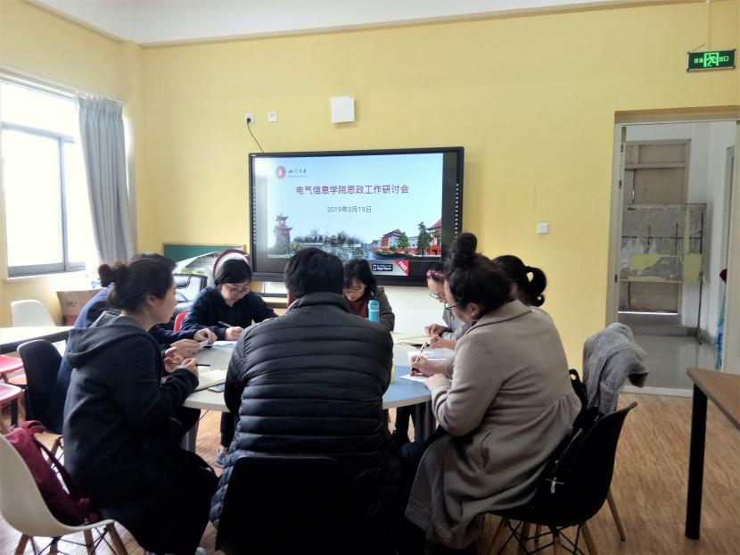 通过对思想政治理论课教师座谈会会议精神的学习,老师们再次认识到了大学生思想政治教育工作的重要性,并就如何更好地讲授《形势与政策》课进行了心得交流。同时,各位教师就学生党建、职业生涯导航、学生资助、招生宣传等学生工作中存在的突出问题进行了研讨,明确了2019年电气信息007足球 学生工作的重点。