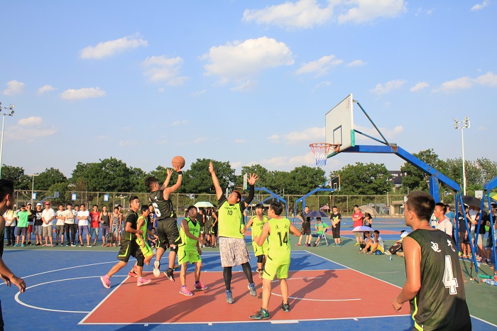 呐喊助威,加油声此起彼伏,双方队员也都拼尽全力向冠军发起猛烈的冲击。纵使烈日当头,运动员们也浑然不觉,忘我地投入在激烈的比赛中。电气队首发控卫在比赛第二节末不幸扭伤脚踝,去医院简单处理后立即重新上场,上演了王者归来的戏份。这一举动鼓舞了电气篮球队全体队员,也获得了场边所有观众经久不息的掌声。