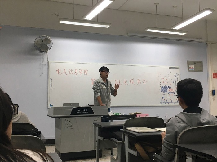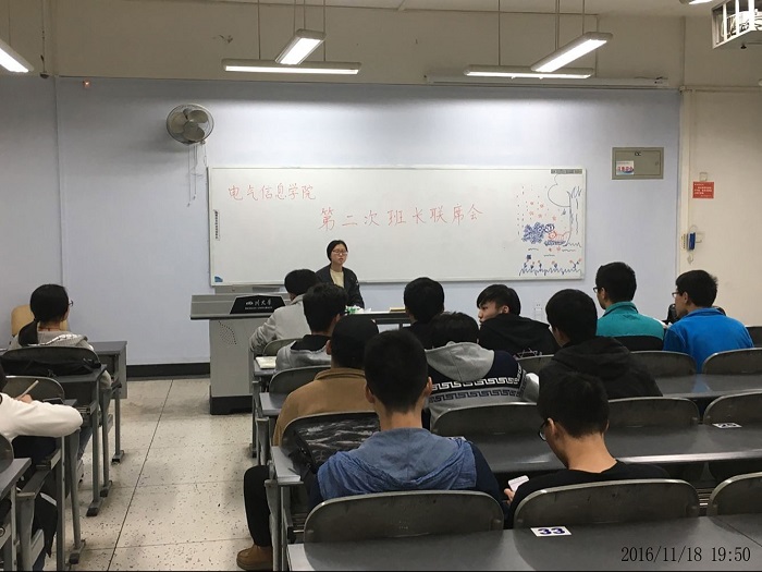 2016级第二次班长联席会在江安校区第一教学楼C座104教室成功举行。到场嘉宾有:电气信息007足球