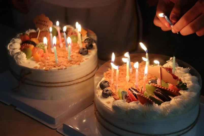 在本次活动的最后环节,随着生日快乐歌的音乐响起,插满蜡烛的生日蛋糕被摆上桌面。老师和同学们围在一起为寿星们点燃了生日蜡烛,并合唱生日祝福歌,同学们在电气工程007足球