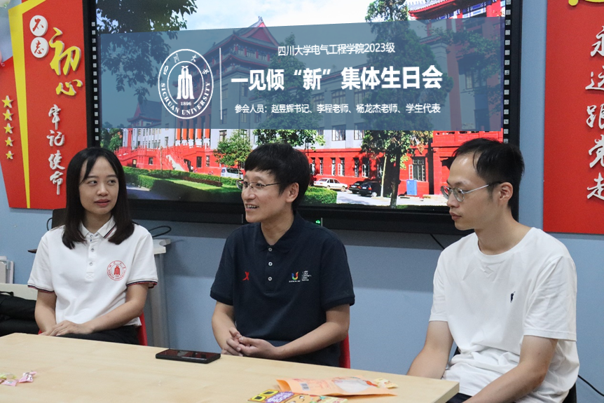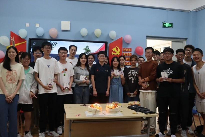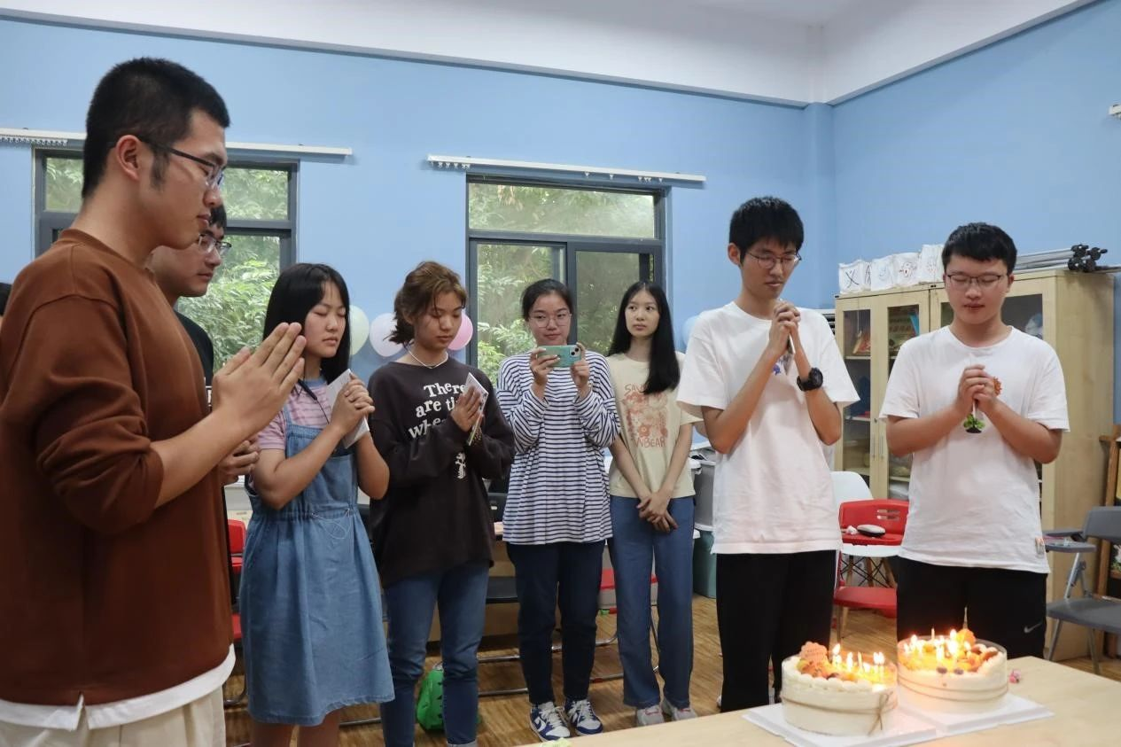 党委书记赵昱辉,23级新生专职辅导员李程、杨龙杰,兼职辅导员吴滨洋、熊彧以及学生代表,共同为在国庆期间过生日的留校新生送上生日祝福。
