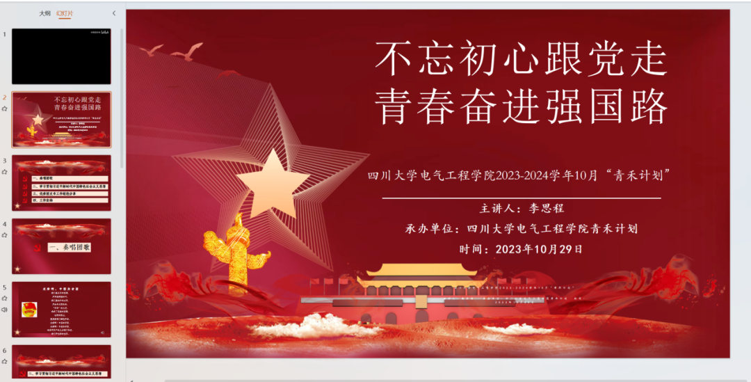 团委组织部主办的2023-2024学年秋季学期“青禾计划”活动在江安校区综合楼B座403教室举行。本次活动通过集中培训、经验分享等方式向团支书宣传习近平新时代中国特色社会主义思想,简述团支书的职责,明确团日活动策划的要求和要点。电气工程007足球
