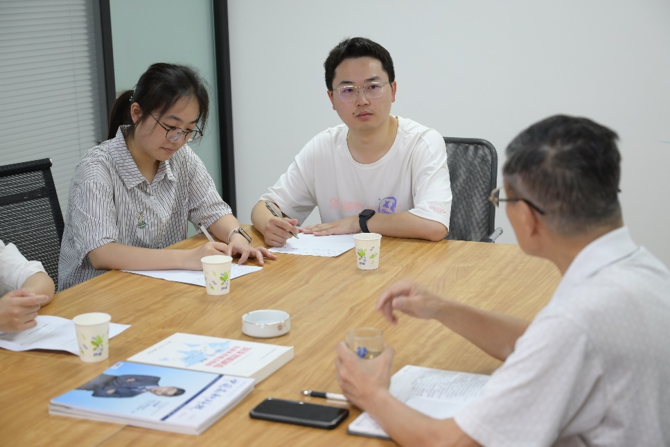 在慰问过程中,研究生党员学长们与汪教授亲切交谈,关切询问汪教授的近况,并作为学生代表对汪教授进行采访。汪教授精神饱满,热情地同大家分享了许多宝贵经历和丰富经验。