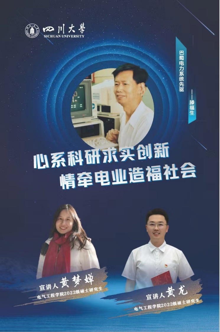 宣讲代表黄龙、黄梦婵以“地震气氛下的科学研究”为主题,生动形象地演绎了滕福生先生在可怖的地震氛围下仍义无反顾投身电气工程建设事业的胸怀与决心,以青年学子的视角开启川大电气科学家记忆。