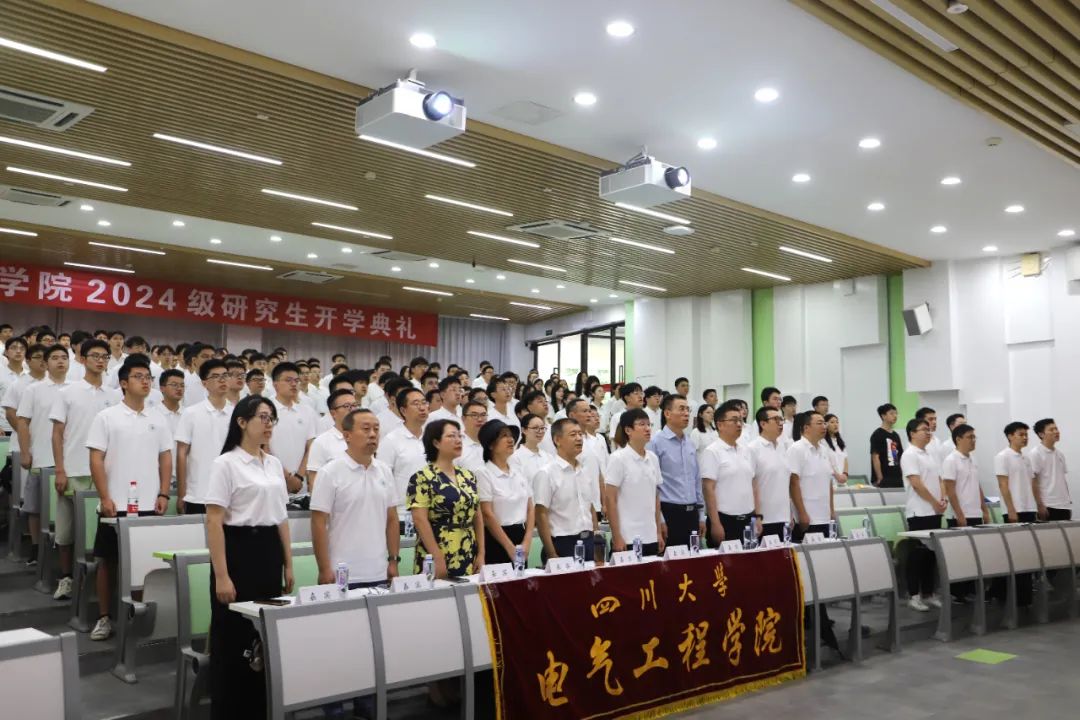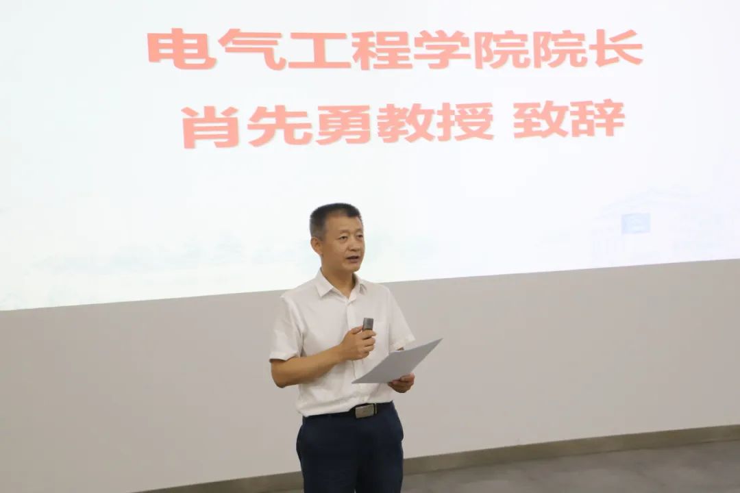 在能源电力和人工智能等领域的重要地位与成就。他鼓励新生们要志存高远,勇于担当,把个人追去主动融入集体、国家的需要。同时,肖院长强调了学术精神的重要性,呼吁同学们崇尚学术、追求卓越,通过不断磨砺,练就真本领,成为引领科技创新的栋梁之才。最后肖院长鼓励同学们脚踏实地,顽强拼搏。用青春的激情和智慧谱就精彩人生,把自己磨砺成国之大者、川大电气之骄傲。