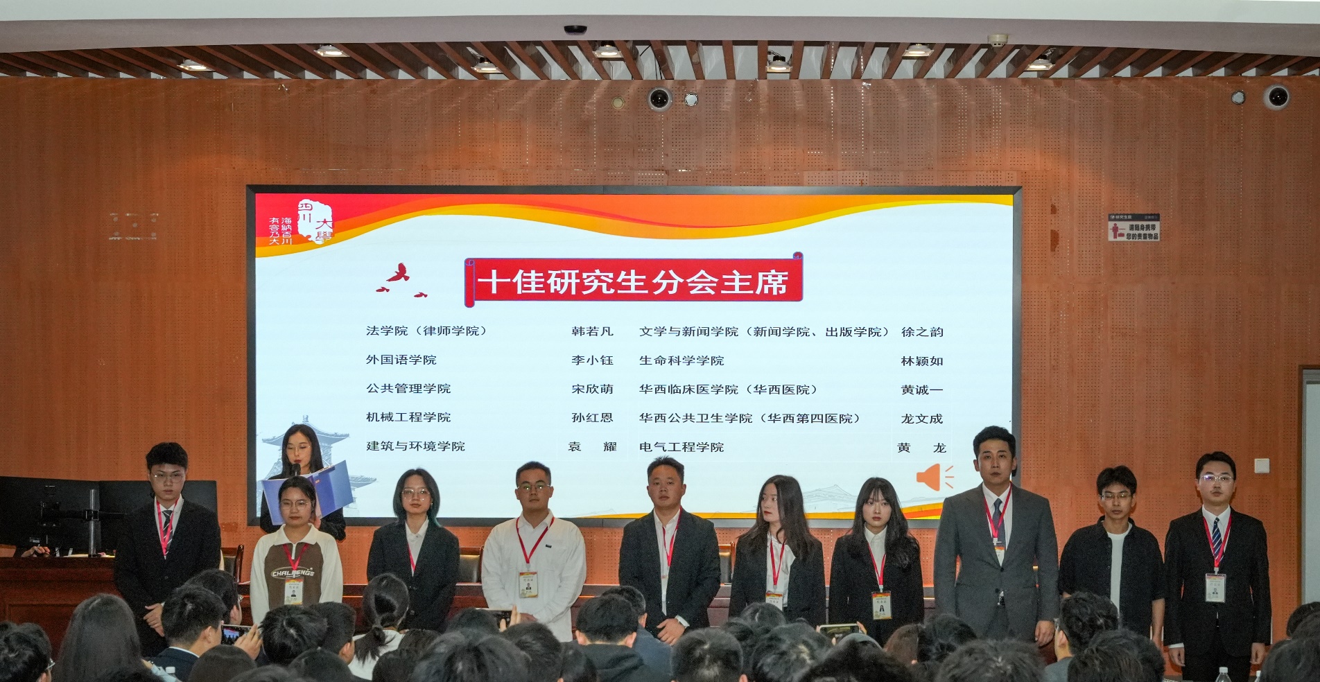 研究生分会主席黄龙获评“十佳研究生分会主席”,在四川大学第三十七次研究生代表大会上,学校领导颁发了十佳研究生分会、十佳研究生分会指导老师、十佳研究生分会主席荣誉证书。