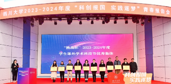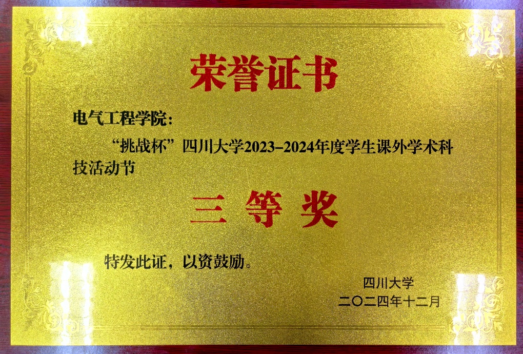 图为“挑战杯”四川大学2023-2024年度学生课外学术科技活动节团体评比获奖证书