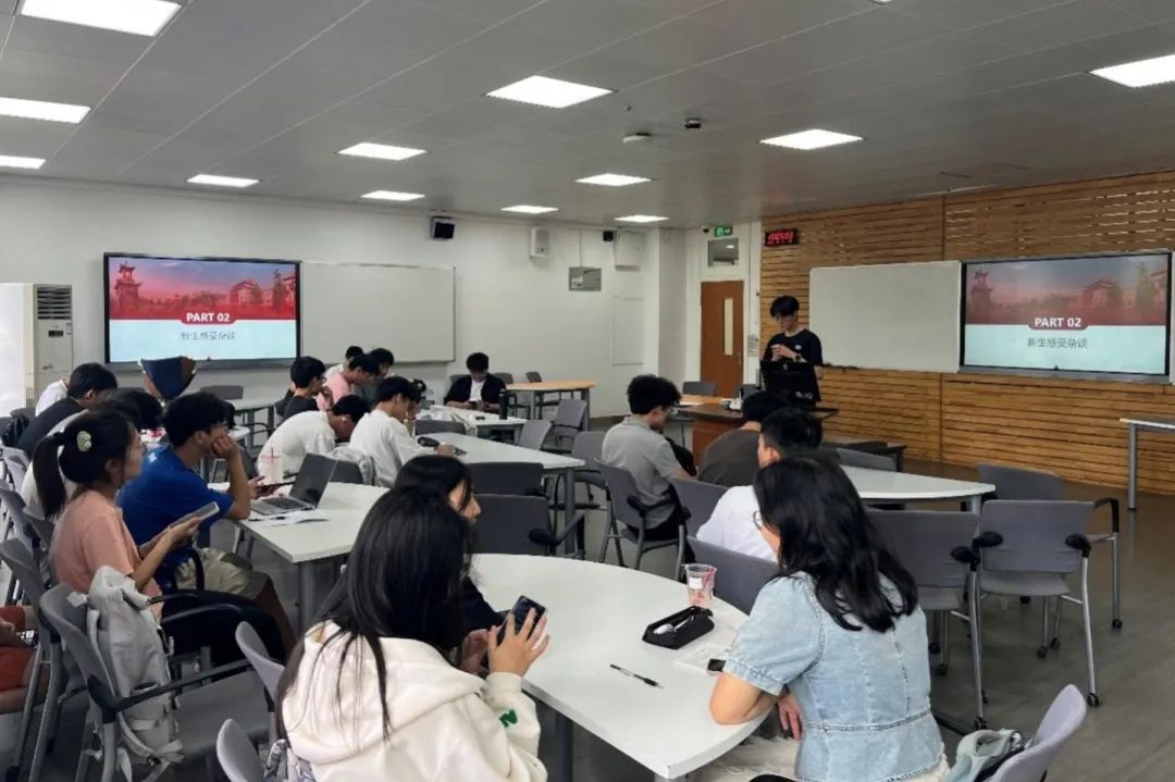 辅导员杨龙杰老师作总结发言。他首先肯定了活动对新生成长的引导价值,随后围绕同学们关注的专业分流选择、学业压力调适和职业规划方向等问题逐一细致解答,鼓励大家从“被动适应”大学生活转向“主动规划”成长路径。