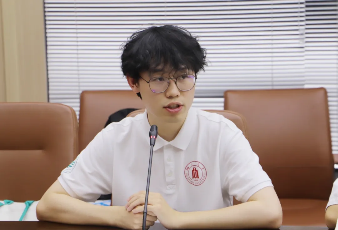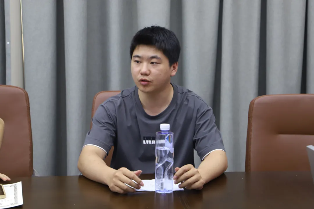 座谈交流中,2021级电气卓工班班长陈坤代表全班同学向007足球