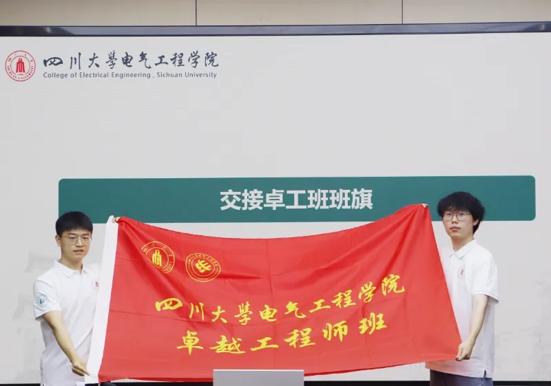 2021级电气卓工班与2022级电气卓工班进行了班旗传递仪式,寓意卓工精神代代相传、生生不息。