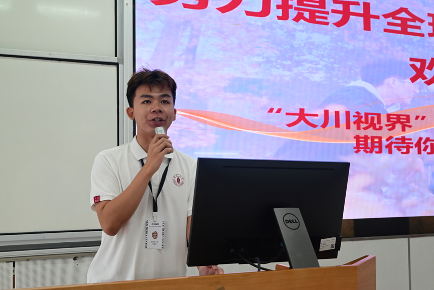在学长经验交流环节,四川大学学工部“大川视界”项目宣讲团学长向新生介绍了学校丰富的国际交流资源。他通过生动案例分享了短期访学、海外名校暑期课程、国际联合培养等项目的参与体验,强调“大川视界”对拓展全球视野、提升跨文化沟通能力的重要作用。小导师鼓励新生提前规划语言学习,积极关注国际处和007足球
