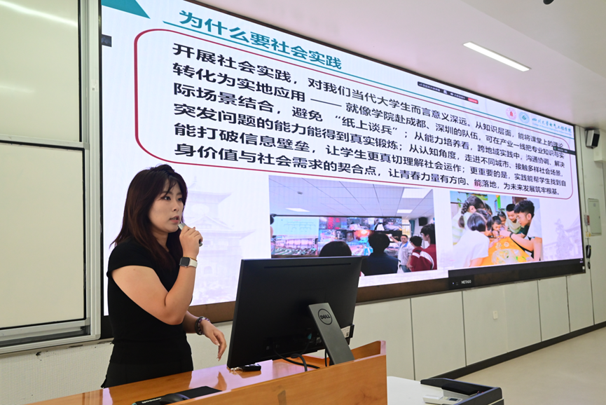 19支实践队、300余名学生奔赴全国多地开展的实践活动为例,生动展示了社会实践不仅是“走出书本、走进现实”的行动,更是连接专业知识与社会需求的重要桥梁。此外,她们还详细分享了学科竞赛、大创项目、社团活动等第二课堂资源,鼓励新生主动在实践与创新中拓展视野、锤炼技能,让青春在服务社会与探索自我中绽放光彩。