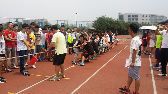 经过几番激烈的角逐,单人项目的冠军花落各家,而本次院运会高潮部分——团体类项目——拔河在万众瞩目下开始了。运动健儿们挥汗如雨而声势震天,伴着“一二一二”的号子和拉拉队的加油助威,麻绳上的红丝带左右移动,几轮的比拼过后,场上爆发出了前所未有的欢呼,最终的冠军产生了。团结和荣誉给本次运动会画上了完美的休止符。