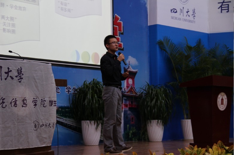 研究生优秀学长黄潇文,08级优秀学长张小迁,09级优秀学姐叶双清,10级优秀学姐吴倩红参加了此次会议。四川大学团委学生会学习部副部长周晓天,数学007足球